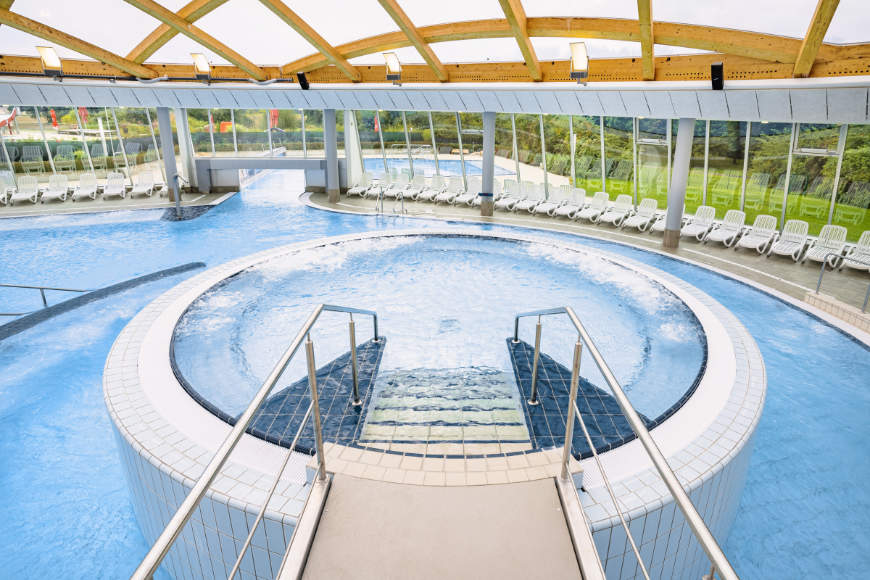 Ein plätschernder Wasserfall, sanfte Sprudelliegen oder der Whirlpool mit Rundumblick – hier findet jeder seinen Lieblingsplatz. Wer gerne die wohlige Wärme genießt, kann im Dampfbad oder in der Textilsauna relaxen. Das Sportbecken bietet genügend Raum zum Schwimmen und Trainieren. Mit einer kuschligen Wassertemperatur von 36° C lädt die Wellness-Lagune mit fruchtigen Cocktails an der Poolbar zum Verweilen ein. Der liebevoll gestaltete Kinderbereich wartet nur darauf entdeckt zu werden. Die Reifen- und Röhrenrutsche garantieren jede Menge Spaß für die ganze Familie. Das Aquateam Wasmeier bietet für Groß und Klein ein breites Kursangebot an.